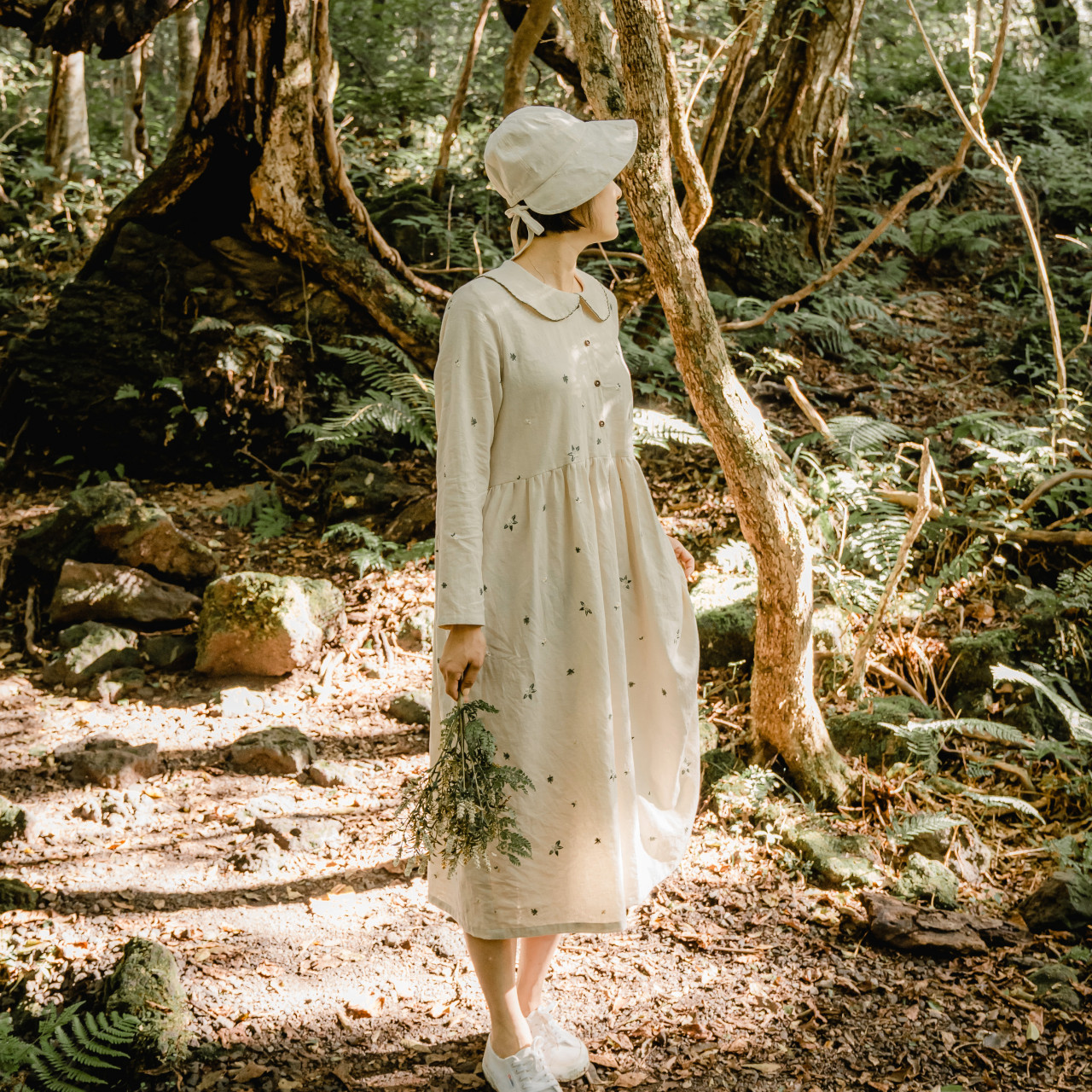 - 곶자왈 자수 핀코트 카라 롱 봄 가을 원피스