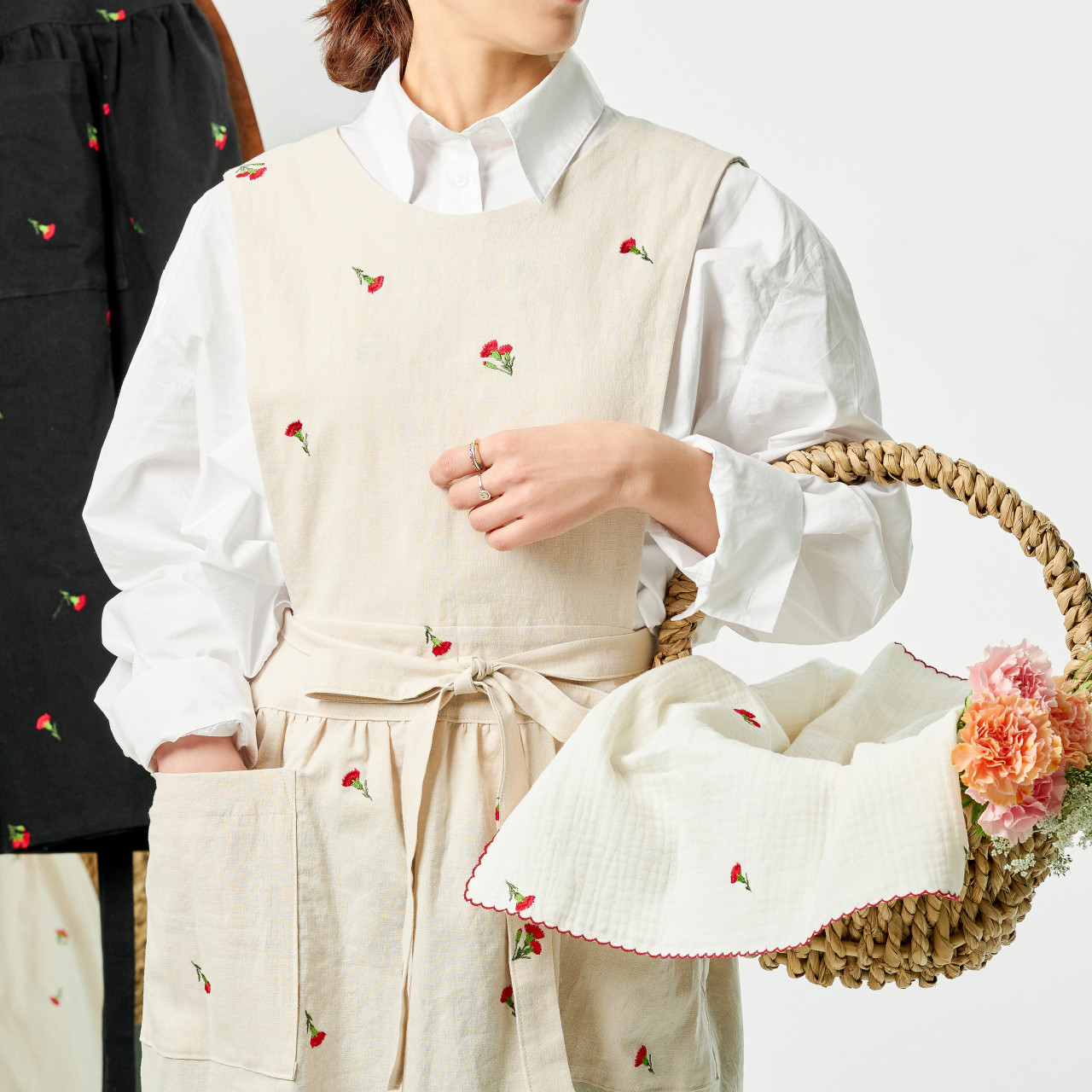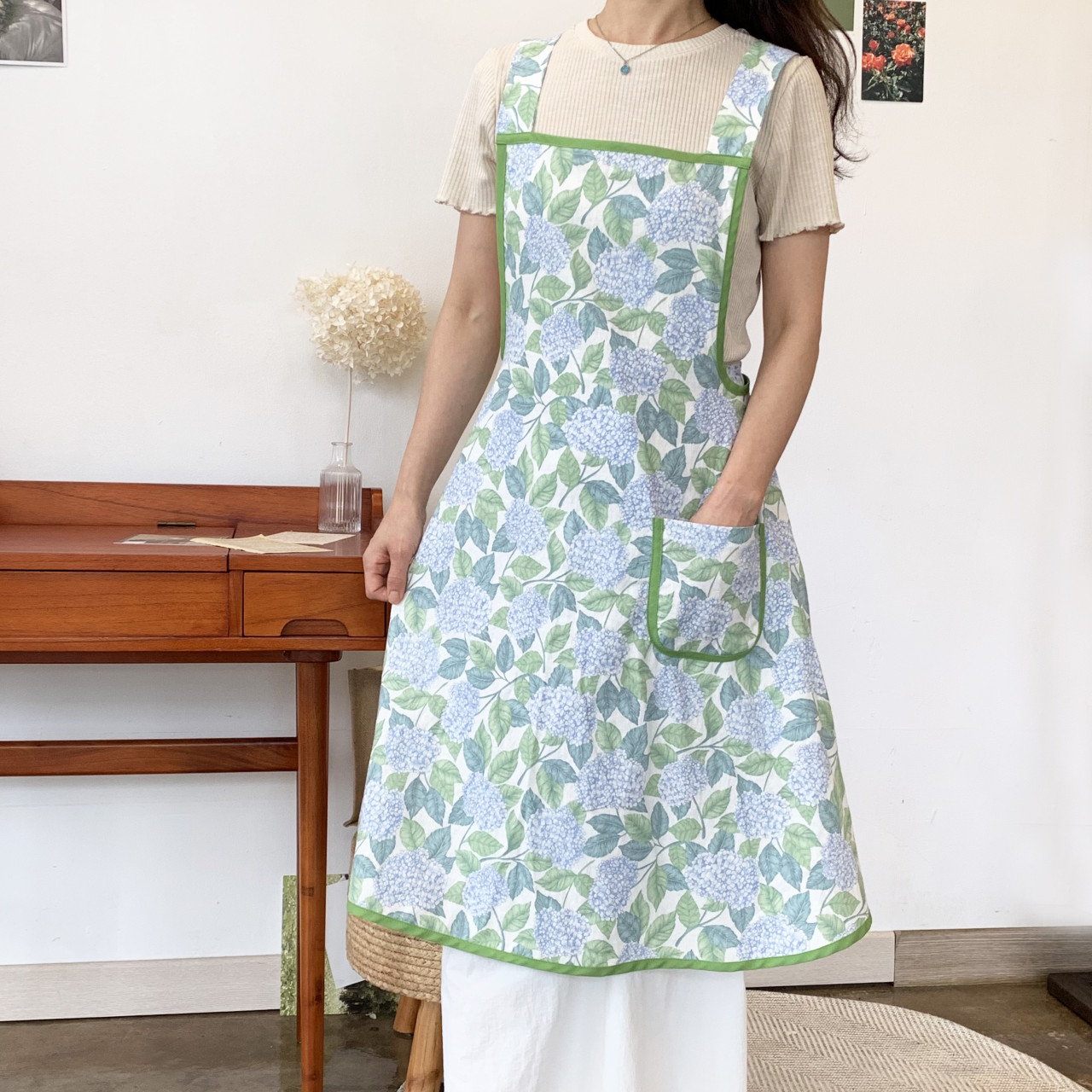 - 수국 플라워 에이프런 린넨 A라인 에이프런 꽃집 앞치마