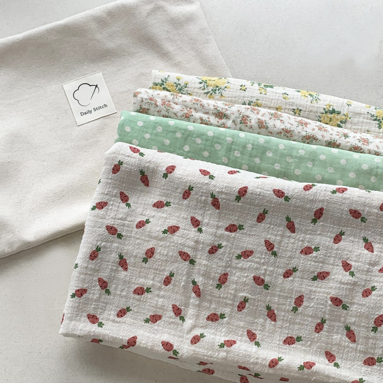 - 잔꽃 땡땡이 당근 거즈 원단 블랭킷 이불 무릎담요 파우치 증정
