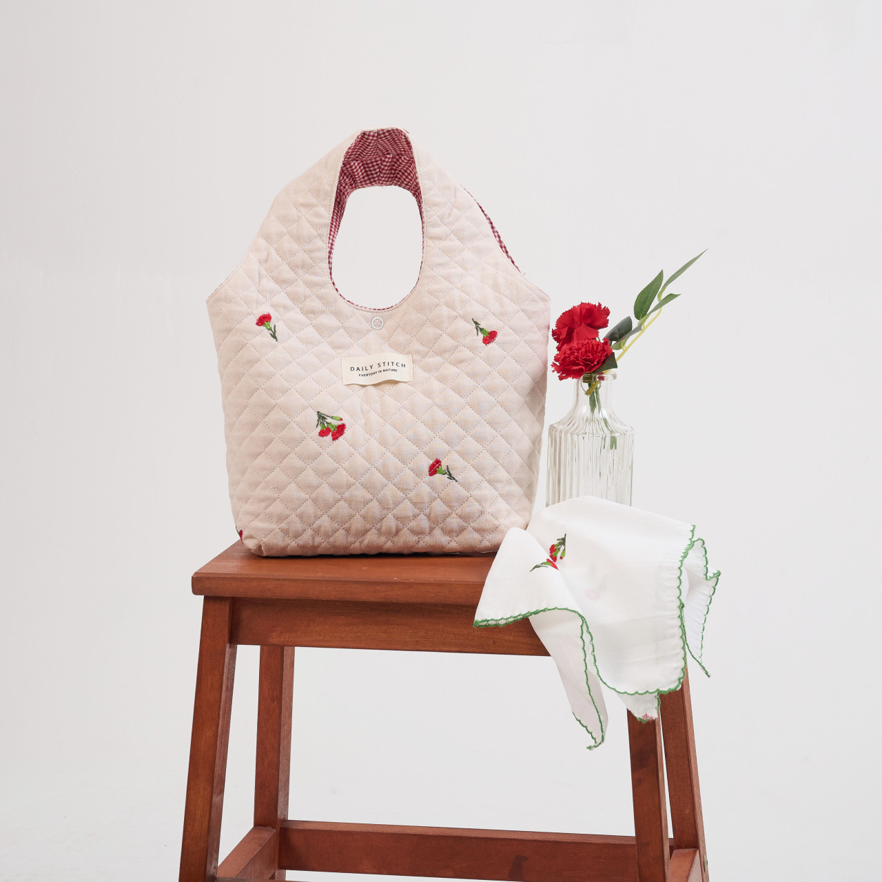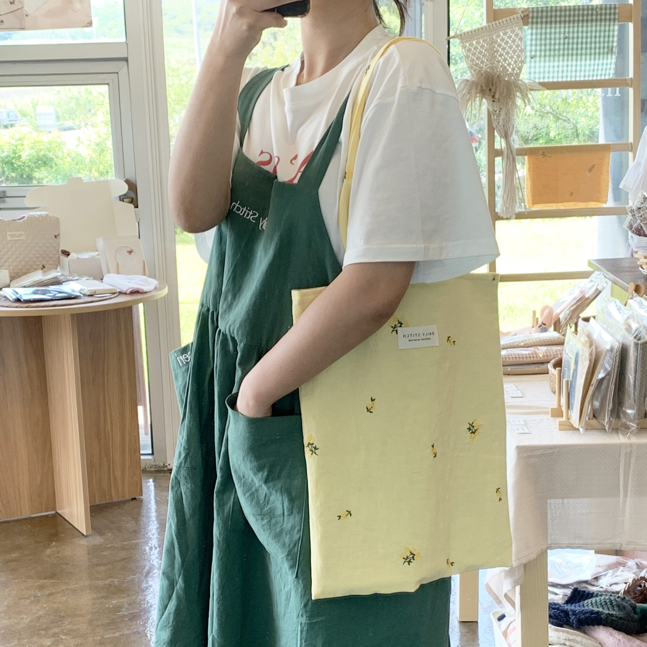 - 데일리 스티치 여자 에코백 린넨 여성 플라워 캐주얼 숄더백