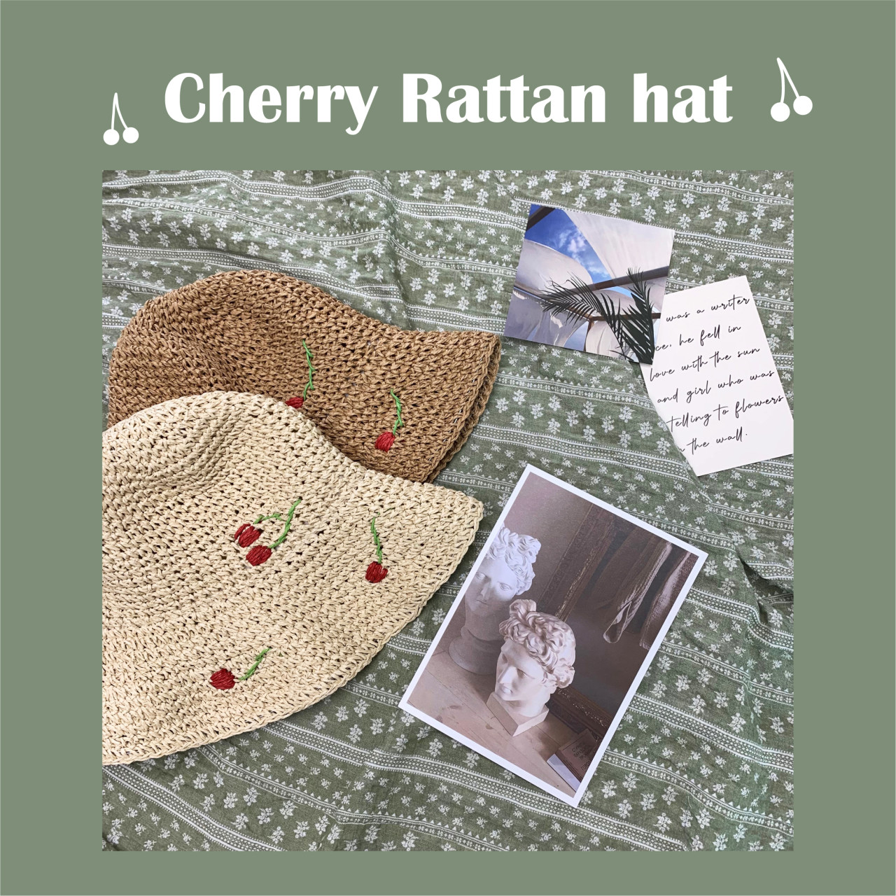 - 체리 라탄 그물 버킷햇 밀짚모자 왕골 여름 휴양지 바캉스 (2color)
